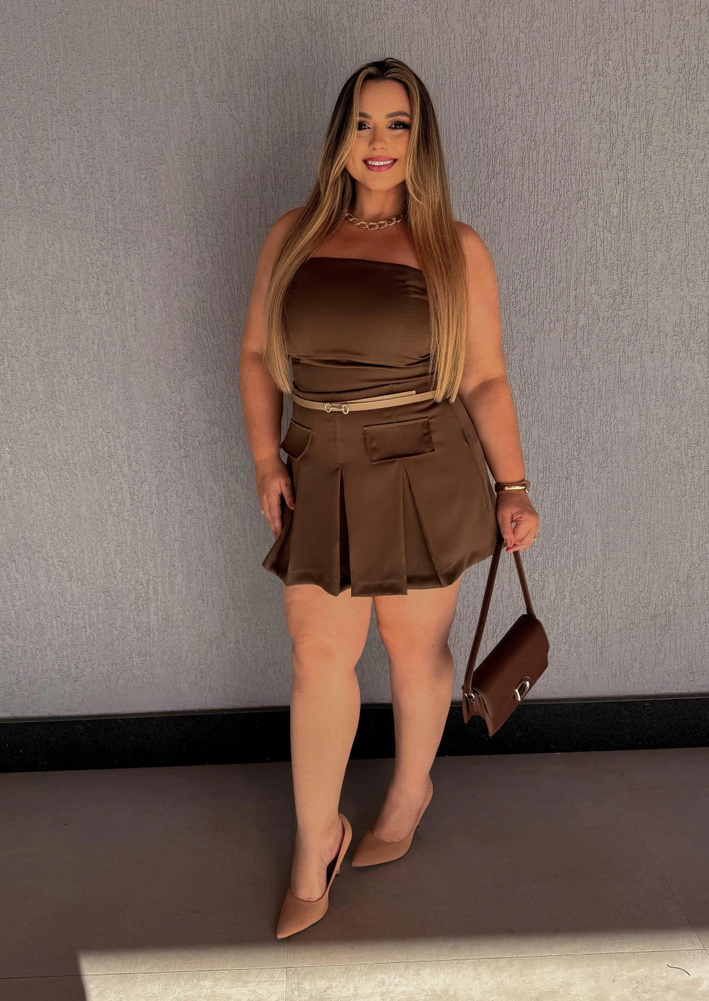 Conjunto Elegance – Cropped Tomara que caia + Short Saia Rodado!