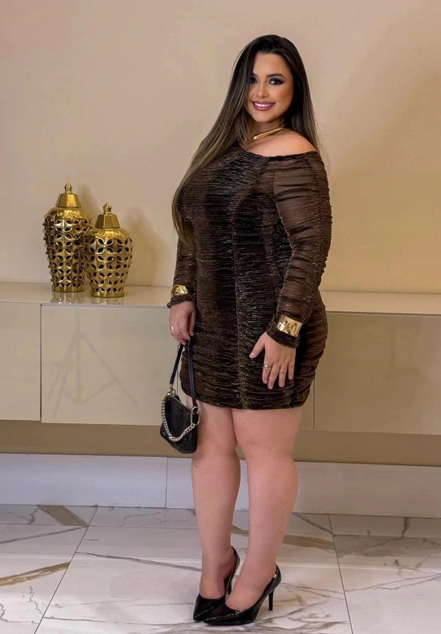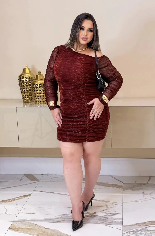 Elegante, moderno e cheio de personalidade, este vestido midi justo foi criado para mulheres que amam destacar sua feminilidade com sofisticação. O modelo possui mangas longas e um recorte assimétrico que deixa um dos ombros à mostra, criando um visual ousado e refinado ao mesmo tempo.