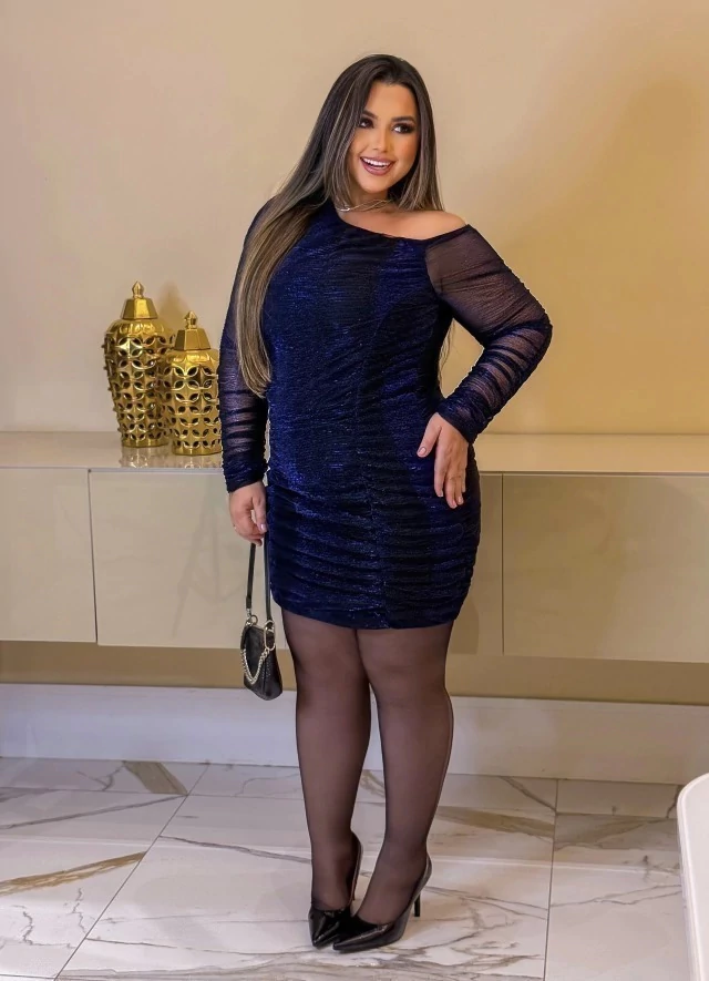 A peça se destaca pelos detalhes franzidos, que valorizam as curvas naturais do corpo, proporcionando um caimento impecável e um toque de originalidade ao look. O comprimento midi equilibra sensualidade e classe, ideal para eventos noturnos, festas elegantes ou ocasiões especiais.